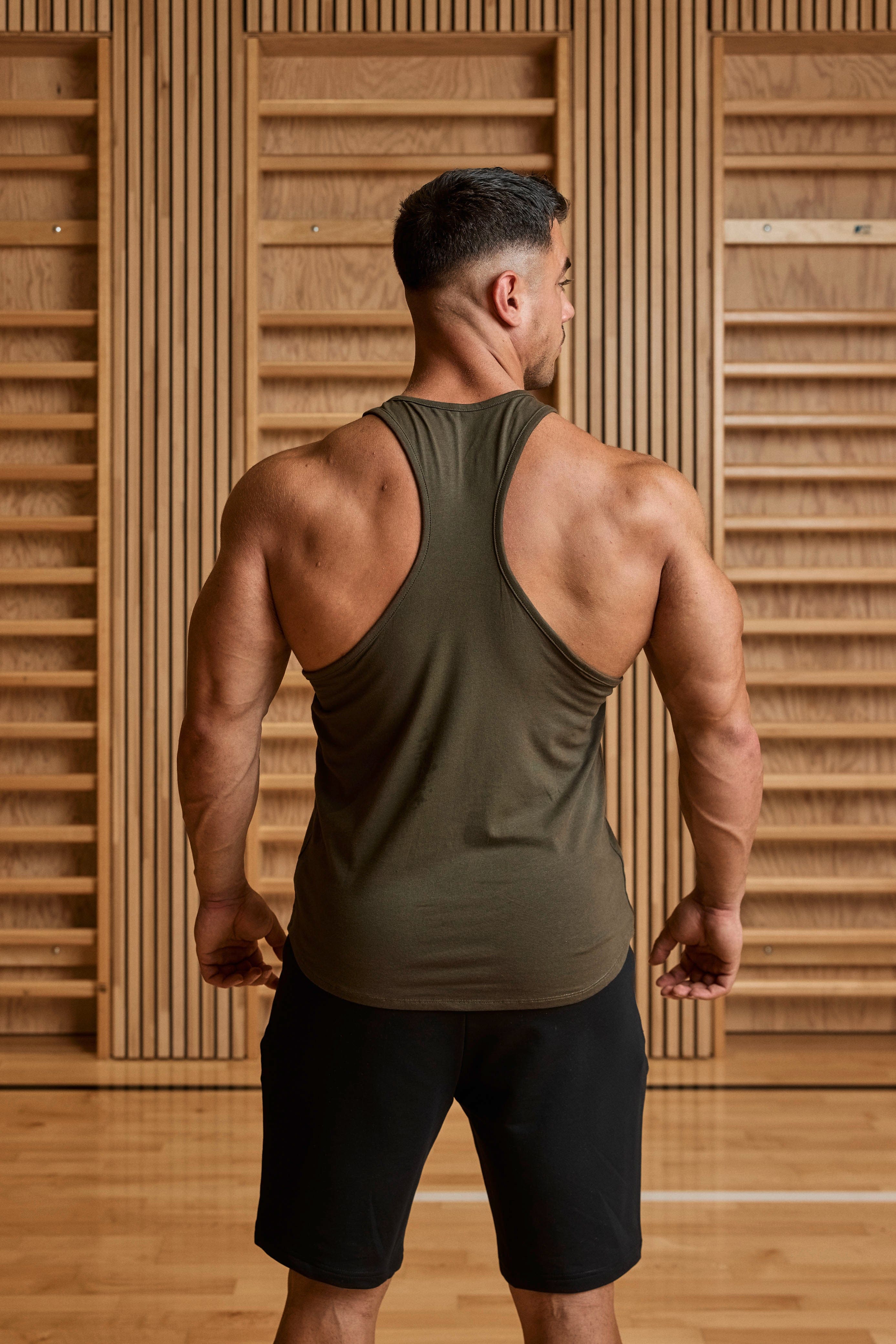 Ta koszulka bez rękawów z miękkiego materiału (95 % bawełna, 5 % elastan) łączy komfort i elastyczność – dokładnie to, czego potrzebujesz na siłowni. Głębokie wycięcia pod pachami zapewniają swobodę ruchu, a materiał naturalnie dopasowuje się do ciała.
